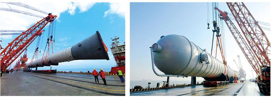 恒逸文萊石化項目是“一帶一路”的標(biāo)志性項目,公司同時參與了恒逸文萊石化一期、二期項目的核心關(guān)鍵設(shè)備,主要有抽余液塔、二甲苯塔、常壓塔、減壓塔等大型超限設(shè)備12臺,總金屬重量近5000噸。