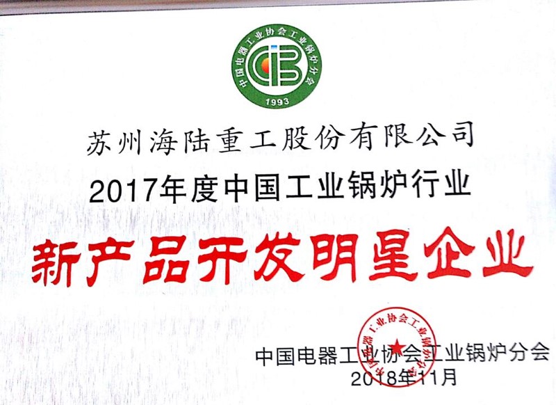 “2017年度中國工業鍋爐行業新產品開發明星企業"