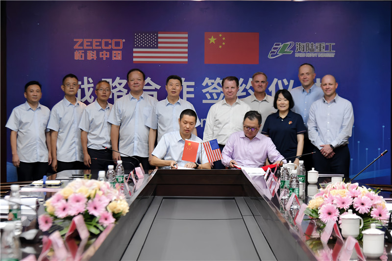 8月23日,蘇州海陸重工股份有限公司與柘科(中國)工程設備有限公司簽署戰略合作協議。美國ZEECO全球總裁及首席執行官Darton Zink先生率領高級副總裁Terry W. Dark、制造總監Darrell Thomas、市場和業務總監Brent Williamson、東南亞分公司總經理Anand Gokhale、柘科(中國)總經理馬原及管理團隊,海陸重工董事長徐元生、總經理徐冉等公司主要領導共同出席戰略合作簽約儀式。